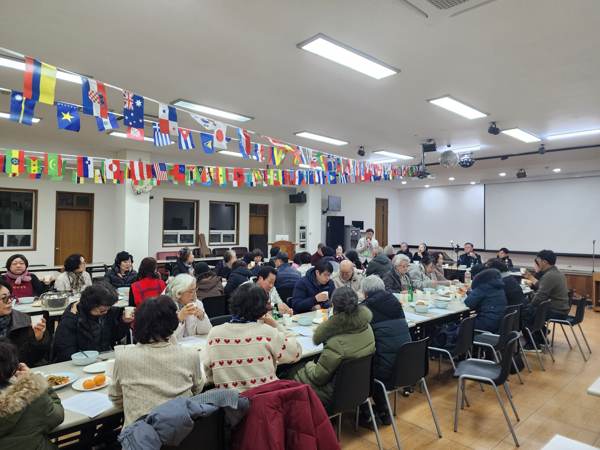 아가페 잔치는 약 1시간 정도 진행이 되었고 본당 회장(주재식/요셉)님의 격려사와 신부님 강복으로 행사를 마무리 하였으며 미리 대기 하고 있던