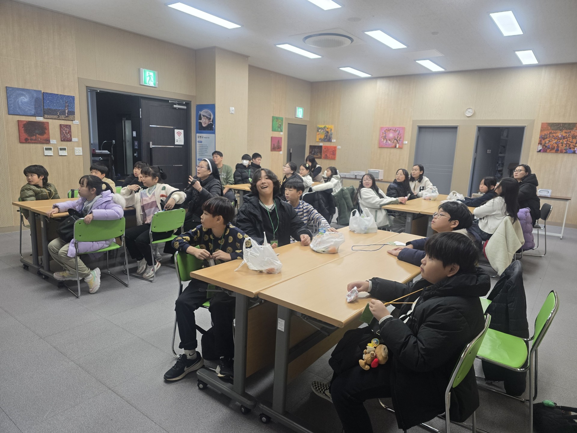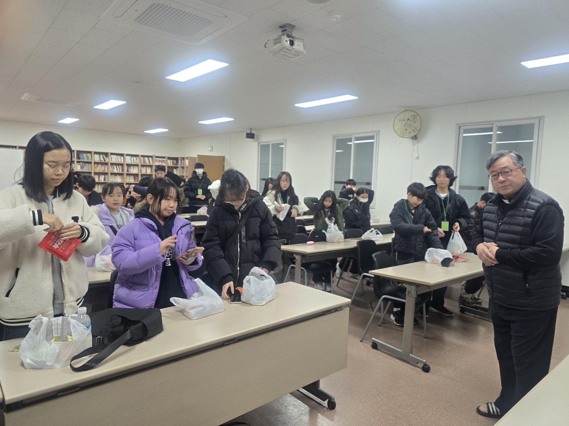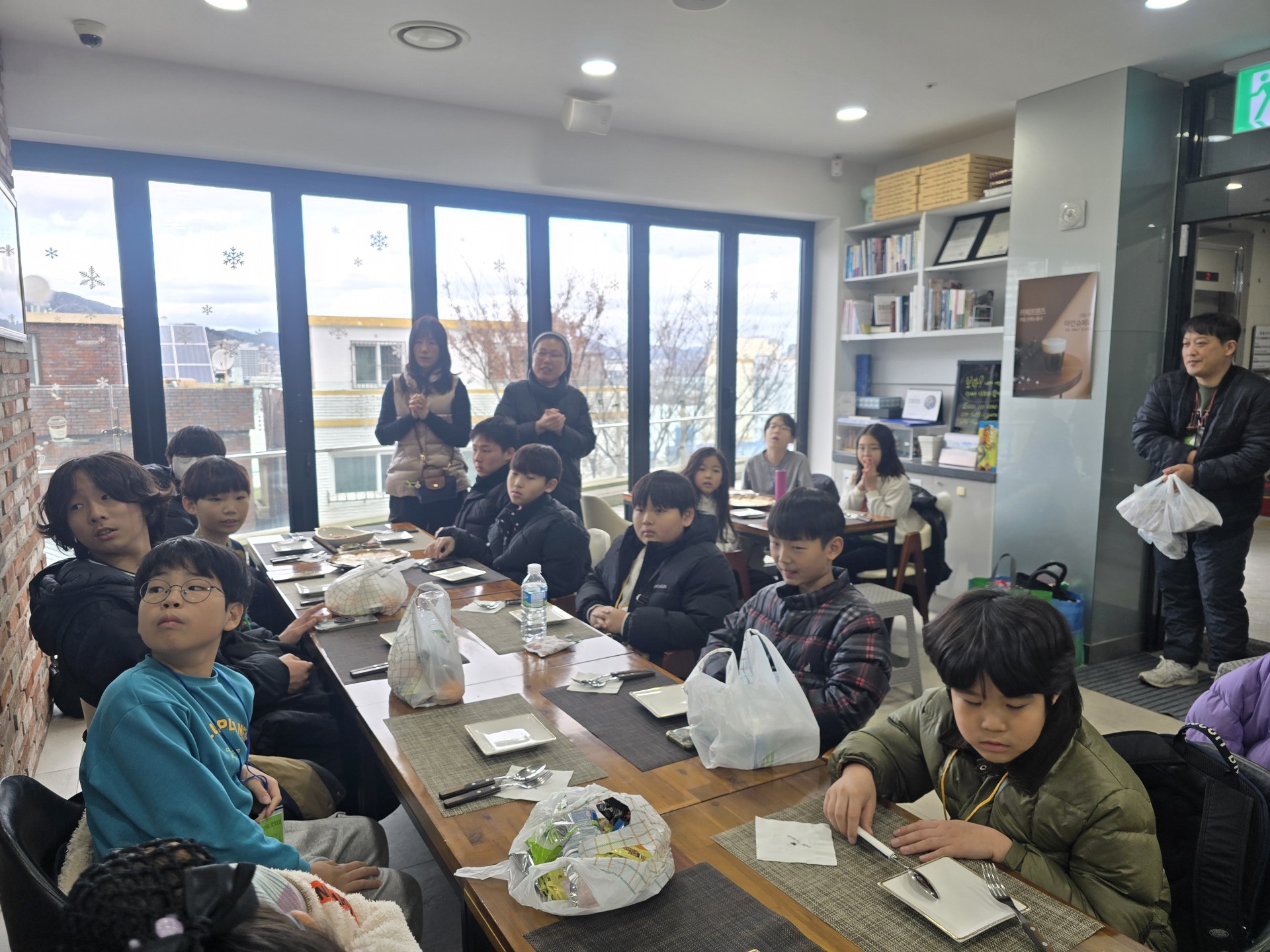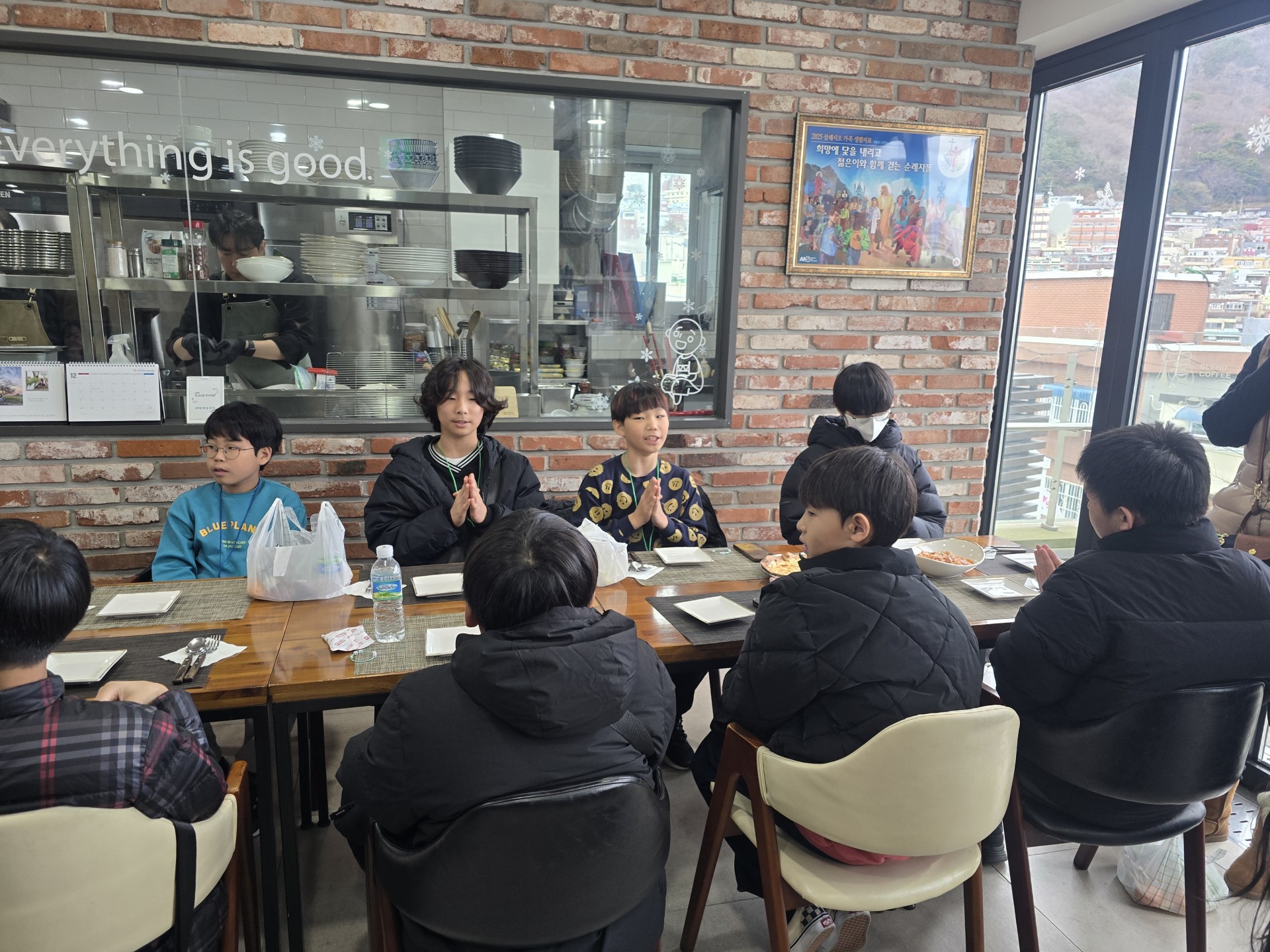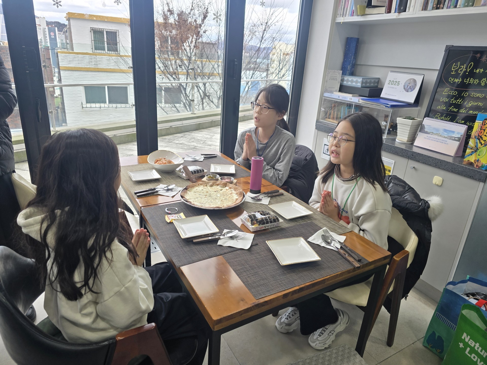 기념관에서 교육과 함께 십자가키링 만들기를하고, 1층 까페테리아에서 수사님께서 요리하시는 피자와 스파게티를 먹었습니다.