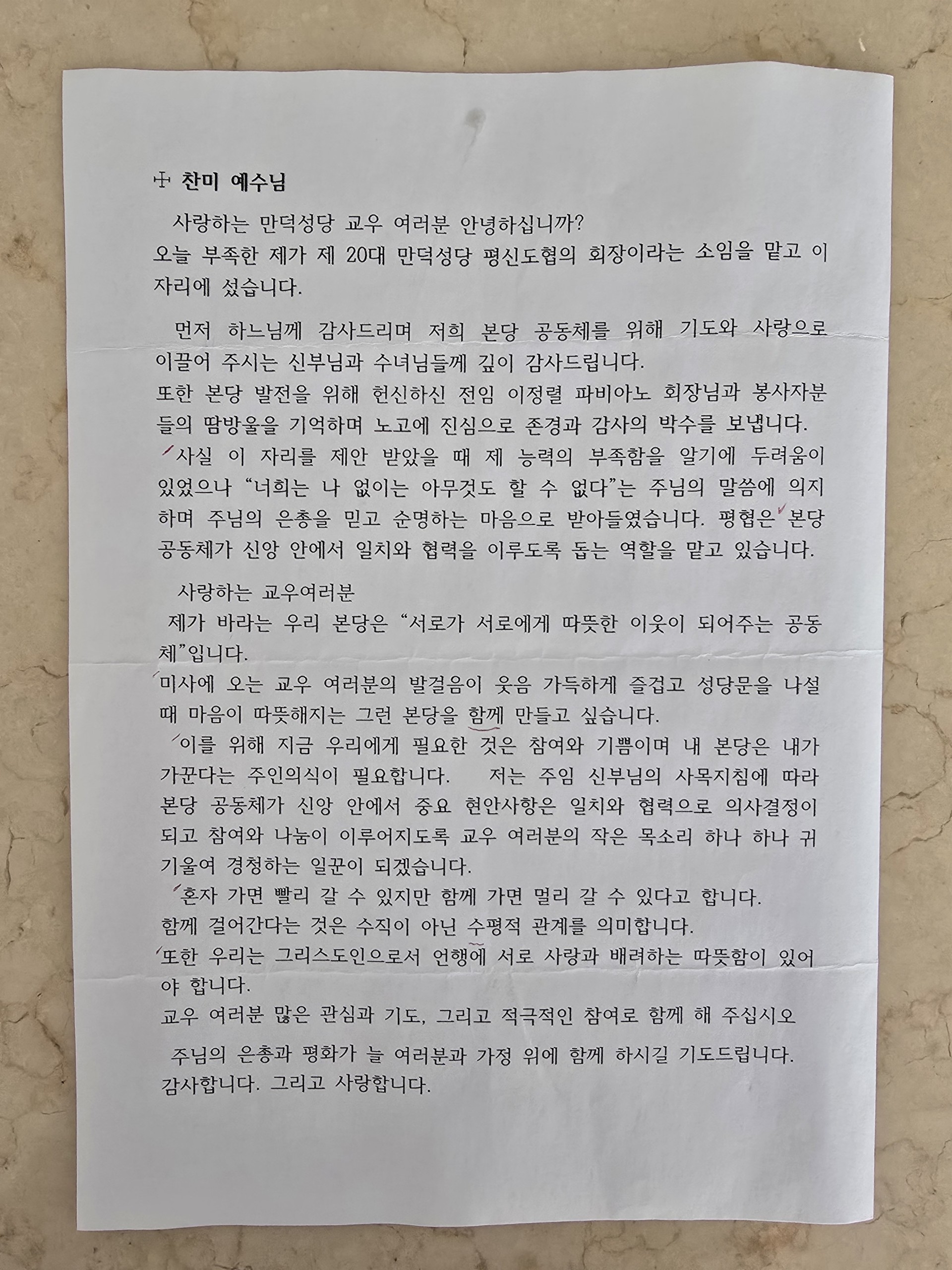 주재식 요셉 회장님 평신도에게 신임 인사 말씀 낭독