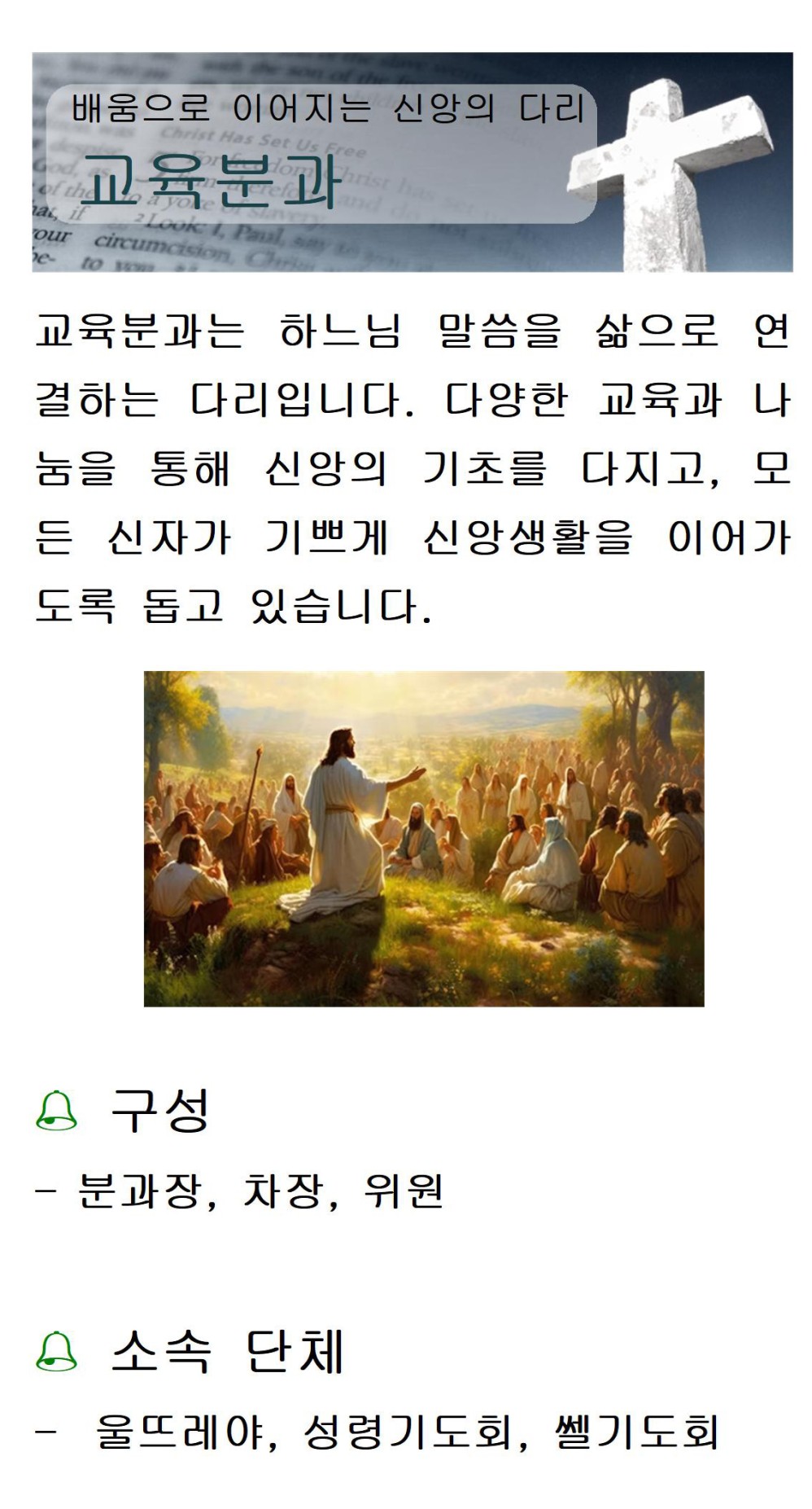 교육분과 페이지 정보 작성자 관리자 댓글 0건 조회 138회 작성일 26-02-02 17:18 목록 답변 본문 글/이미지 만덕성당 교육분과 이전글전례분과 26.02.08 다음글해냄성가대 26.02.01 댓글 0 댓글목록 등록된 댓글이 없습니다.